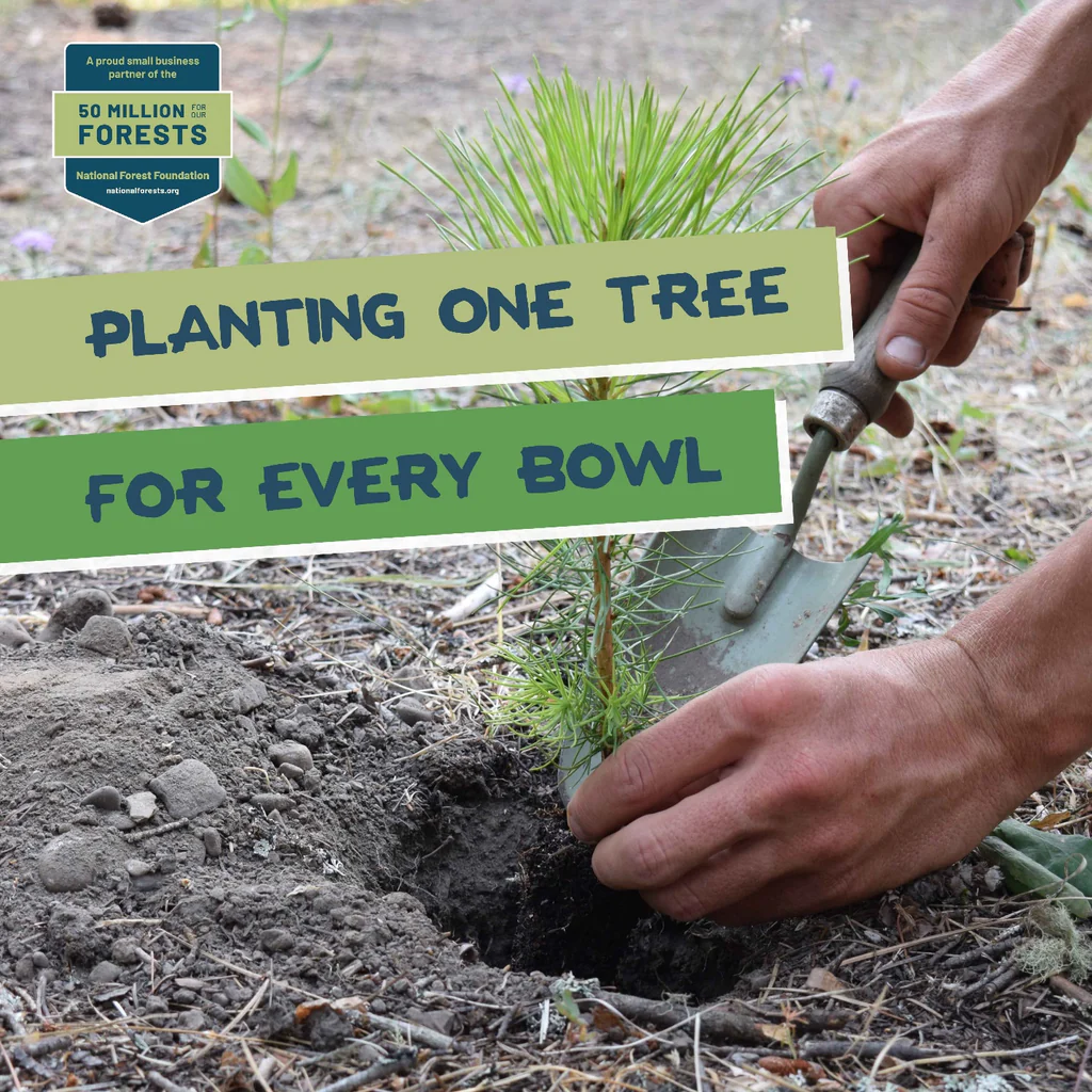 The Great Alaskan Bowl Company prides itself on being a low to zero waste manufacturing facility, using up or giving away all parts of our byproducts from sawdust to firewood. The bowls themselves are made for generations of use and are biodegradable. Additional focus is put-on long-term use when choosing sustainable products for our store, limiting overseas purchases, and focusing on products that will last. In December of 2021, we entered a small business partnership with the National Forest Foundation, pledging to plant one tree for every bowl sold. In our first year of this partnership, we plan to donate enough to plant more than 10,000 trees in areas desperate for reforestation.