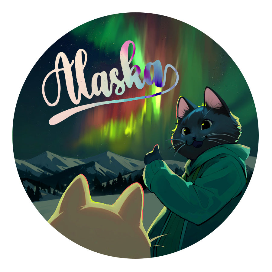 Alaskan-inspired artwork—designed in-house and printed on durable, waterproof vinyl. Perfect for water bottles, notebooks, laptops, or wherever you want to add a little Alaska flair.