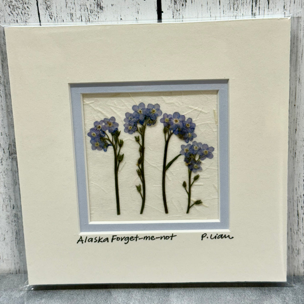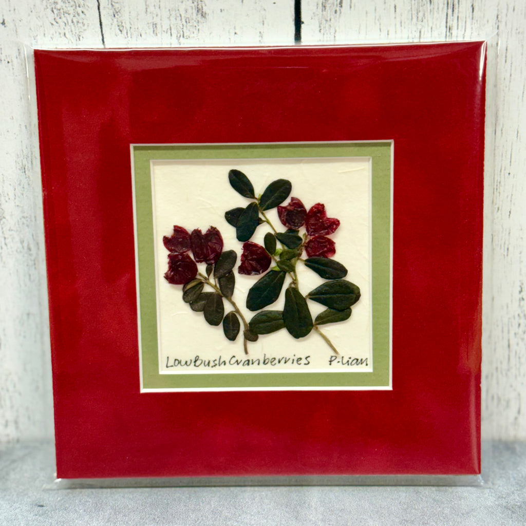 Each botanical artwork is made from real pressed botanicals that grow abundantly throughout Alaska. They are pressed immediately after gathering to capture their bright colors. Mounted on textured or handmade, acid free paper, these botanical artworks are truly one of a kind.