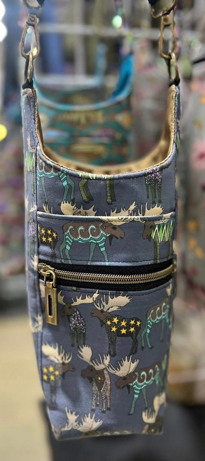 This water bottle holder is a beautiful, handcrafted crossbody sling bag for hands-free carrying of your favorite beverage. The front zipper pocket is a great way to hold keys, cards, or other essentials and the front slip pocket will hold most phones. An adjustable 1" nylon strap with swivel hooks on both sides makes it easy to grab and go too. It is the perfect companion on your next hike, trip to the farmers market, festival, or walk around your neighborhood!